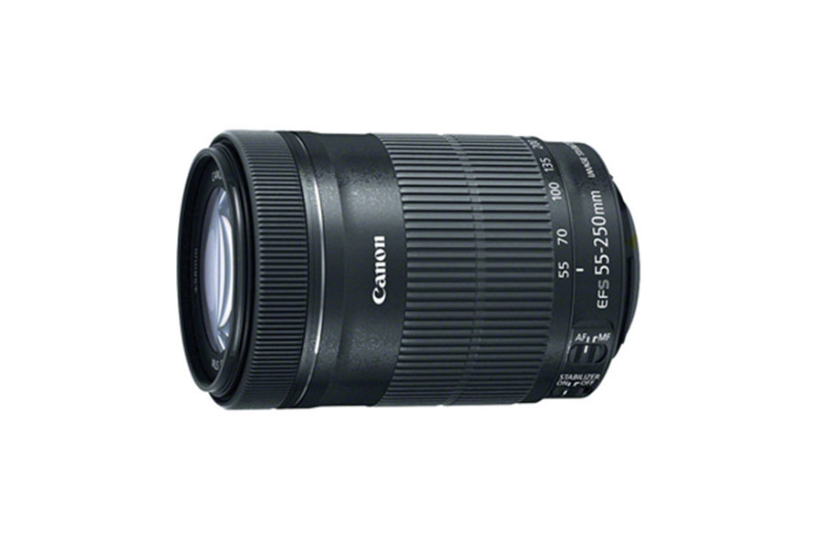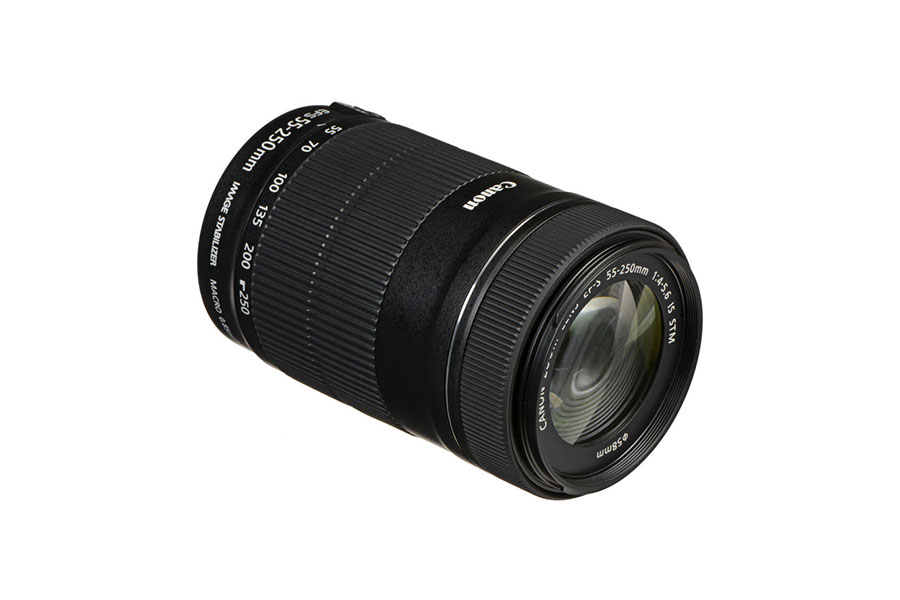 در قالب یک لنز تله کامپکت و سبک EF-S بزرگنمایی بالایی فراهم می کند و مجهز به یک سیستم لرزه گیر اپتیکال با ۳٫۵ گام با توقف معادل برای اصلاح لرزش دوربین است. موتور پله ای و مکانیسم فوکوس تازه طراحی شده این لنز حالت و سیستم Canon EOS Movie Servo AF یا فوکوس خودکار سروو ( نام دیگر موتورهای پله ای ) را ساپورت می کند ( که بر روی برخی از دوربین های EOS Canon وجود دارد ) و در طول فیلمبرداری و گرفتن عکس فوکوس خودکار پیوسته نرم و بی صدایی فراهم می کند. دارای یک عدسی UD است که در طول دامنه زوم لنز کانن EF-S 55- 250mm F/4-5.6 باعث کاهش انحراف کروماتیک شده و تصاویری فوق العاده با کیفیت، تصویر بسیار خوب با رزلوشن و کنتراست بالا فراهم می کند. از طرف دیگر این لنز تله کانن EF-S 55-250mm IS STM برای ایجاد توازن رنگ بسیار عالی و کاهش پدیده شبه ( امتداد پیدا کردن یا دوتا شدن بخشی از قسمت های سوژه های متحرک در تصویر ) دارای پوشش های پیشرفته ای است و وجود دیافراگمی با ۷ تیغه گرد پس زمینه های نرم زیبایی ( منظور از نرم یا Soft در عکاسی عدم وضوح کامل یا تارشدگی بخشی از تصویر بویژه پس زمینه آن است که باعث برجسته شدن سایر بخش ها، مخصوصاً سوژه اصلی می شود ) در تصویر ایجاد می کند. لنز کانن ۲۵۰-۵۵ میلی متر دارای ۱۵ جز اپتیکال است که در ۱۲ گروه قرار گرفته اند. این لنز دارای یک سیستم زوم شش گروهه کامپکت جدید است که با فراهم کردن حداکثر بزرگنمایی ۲۹x در حالت تله عملکرد فوق العاده ای برای لنز ایجاد می کند. این لنز در حالت AF دارای فوکوس دستی فول تایم است. جزء جلویی لنز در طول فوکوس نمی چرخد، که هنگام استفاده از فیلترهای پلاریزاسیون به همراه لنز ویژگی خوبی است. حداقل فاصله فوکوس این لنز کانن ۰٫۸۵ متر است. سیسم فوکوس عقب، CPU سرعت بالا و الگوریتم AF ارتقاء یافته این لنز امکان فوکوس خودکار سرعت بالا را فراهم می کنند.